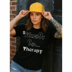 Feeling stressed? Anxious? Let the healing power of music soothe your soul with this "Music is Therapy" t-shirt.